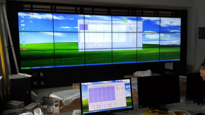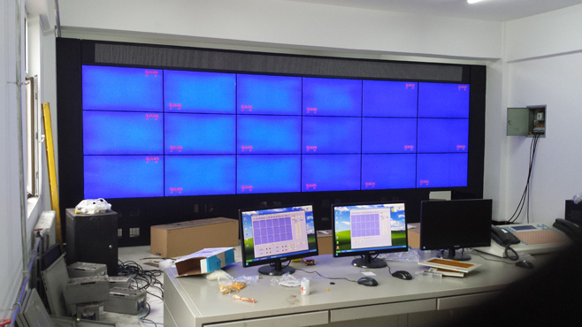 項目簡介:本項目采用“五洲視界”品牌50寸窄邊液晶拼接屏,按照3行6列排列順序,落地支架安裝方式,共計18塊屏;控制設備采用“五洲視界”品牌高清解碼矩陣,達到實時監控,任意顯示。