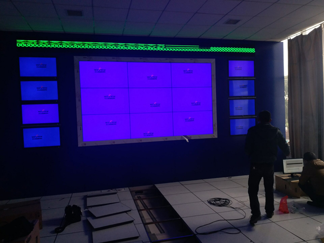 項目簡介:本項目采用“五洲視界”品牌46寸窄邊5.3mm液晶拼接屏,按照3行3列壁掛安裝,外加8塊32寸五洲高清液晶 監視器安裝在兩側;控制設備采用“五洲視界”品牌外置多屏拼接處理器,解決了信號廣、信號雜、遠距離傳輸、項目復雜的難題。大屏顯示絢麗,色彩逼真 ,高效率達標,實現了工廠遠程監控管理的目標,獲得了客戶的高度肯定和稱贊。