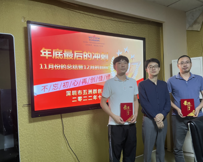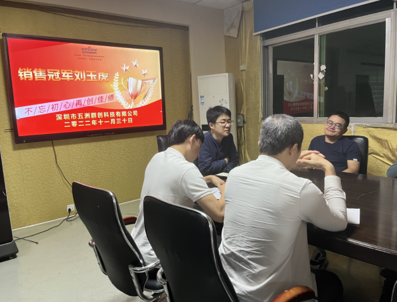 11月30號,深圳市五洲群創科技有限公司業務部在會議室召開2022年度11月份工作總結暨表彰會議,總結11月份工作,表彰業務銷售冠軍,并就新的月份工作作出安排部署。全體業務部成員,五洲總經理,業務員商務等參加會議。