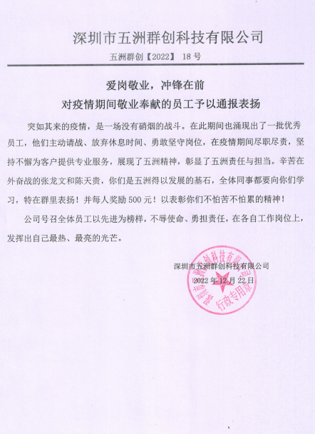 愛崗敬業(yè),沖鋒在前,對疫情期間敬業(yè)奉獻(xiàn)的員工予以通報(bào)表揚(yáng)