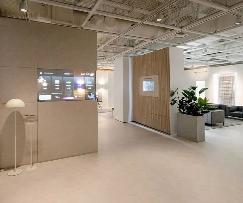 展覽由五個主題空間組成,包括移動空間、辦公空間、文化娛樂空間、零售空間和家居空間。在本次展會中,參展者能親身體驗到透明OLED在日常生活中打造的全新體驗。