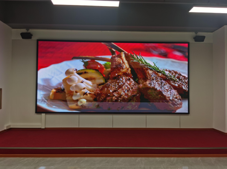 該LED會議顯示屏安裝在深圳前海某集團公司會議室,面積約為4900*2340mm平米,采用1.25mm點間距,顯示效果清晰,色彩艷麗。根據客戶需求定制屏幕的安裝方案,極簡鋼構及超輕薄設計,使得顯示屏完美貼合且無損玻璃墻體。屏幕為大型活動、宴會、宣傳等場合提供文字、影像播放功能。一經點亮,生動鮮活的畫質,屏幕猶如一幅畫卷,成為該復合型城市產業綜合體一張靚麗名片。