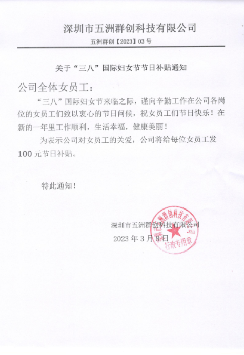 38女神節通知-深圳市五洲群創科技有限公司-品牌五洲視界