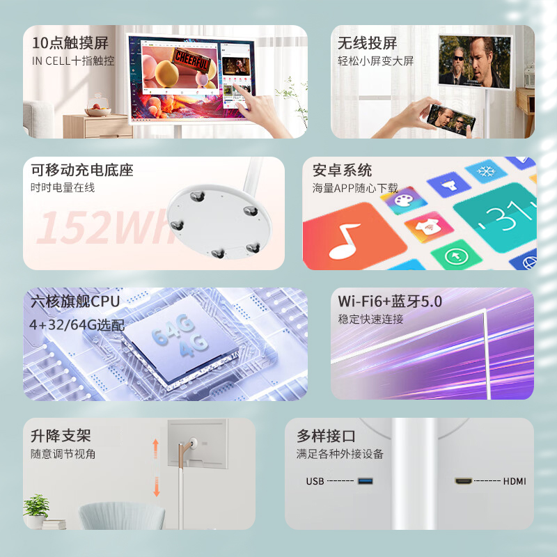 可移動隨心屏,就是這樣一款神奇的設備。它既可以作為學習平板,又可以作為電腦或電視機使用,讓你的生活更加便捷。不僅如此,它還擁有健身大屏的功能,讓你隨時隨地進行運動鍛煉??梢苿与S心屏的自由度極高,便攜式設計讓你輕松攜帶,隨時隨地暢享智慧大屏的體驗。