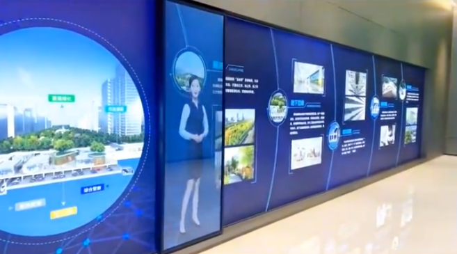 通過拍攝一段真人講解影片,放置到電動滑軌屏上,滑軌屏根據影片講解人員移動的步伐,配合與實物展品作講解互動。給觀眾營造極致的虛擬人物展示講解效果。