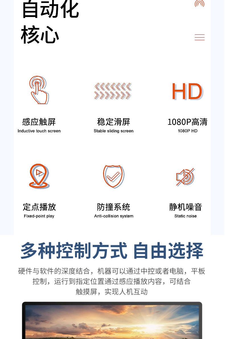 2) 企業(yè)簡介:可設置企業(yè)介紹、企業(yè)榮譽、合作伙伴、重點案例等感應節(jié)點,滑動到相應位置,即展現(xiàn)相關的視頻,圖文資料