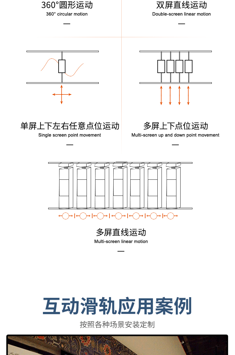 1) 滑軌長度根據(jù)屏幕尺寸定制,導軌接觸良好、壓力均勻、跟蹤靈活,控制識別系統(tǒng)反應靈敏;