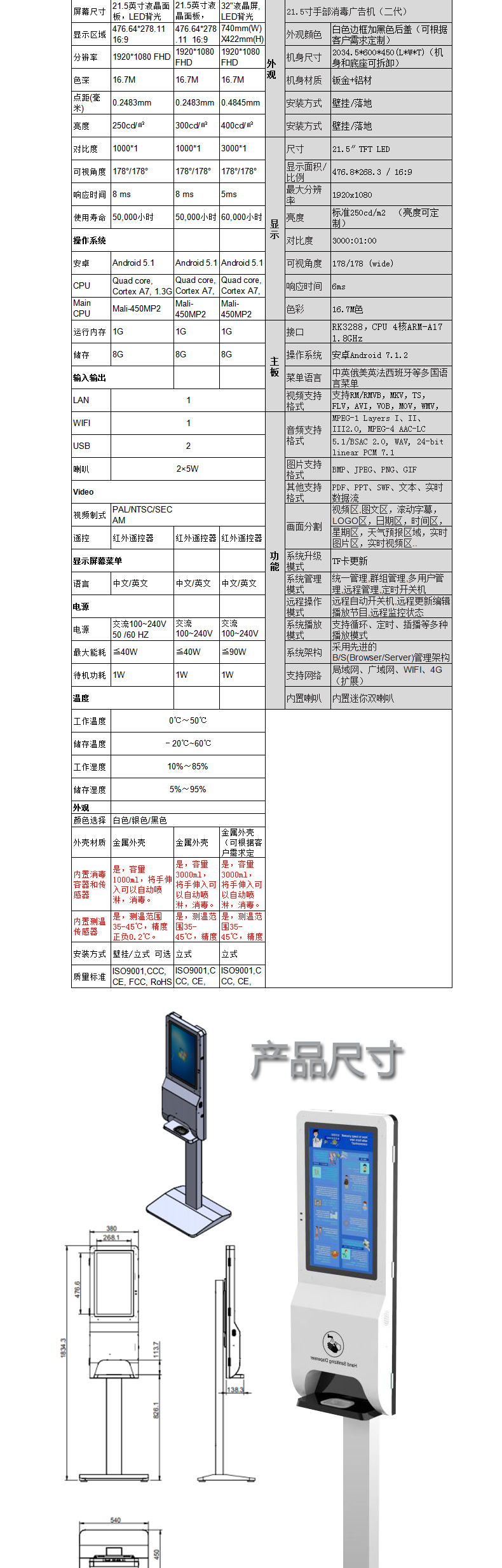 • 21.5寸手部消毒測(cè)溫廣告一體機(jī)(1L)