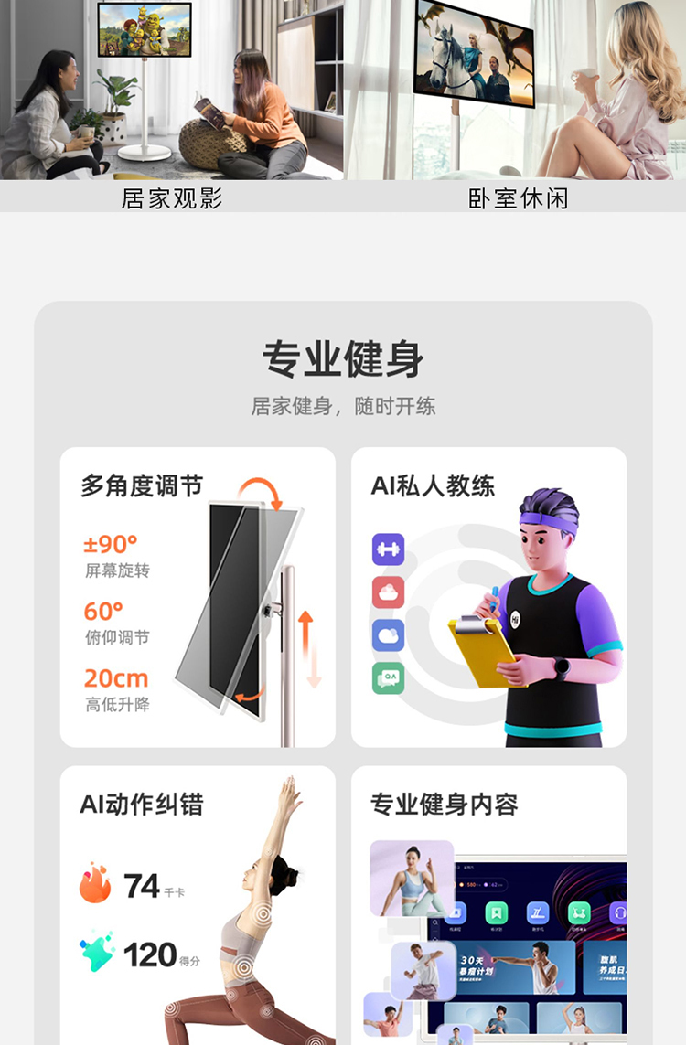 隨心屏閨蜜機(jī)移動(dòng)智慧屏無(wú)線投屏直播機(jī)觸摸可移動(dòng)電視健身大屏智能網(wǎng)課神器顯示器